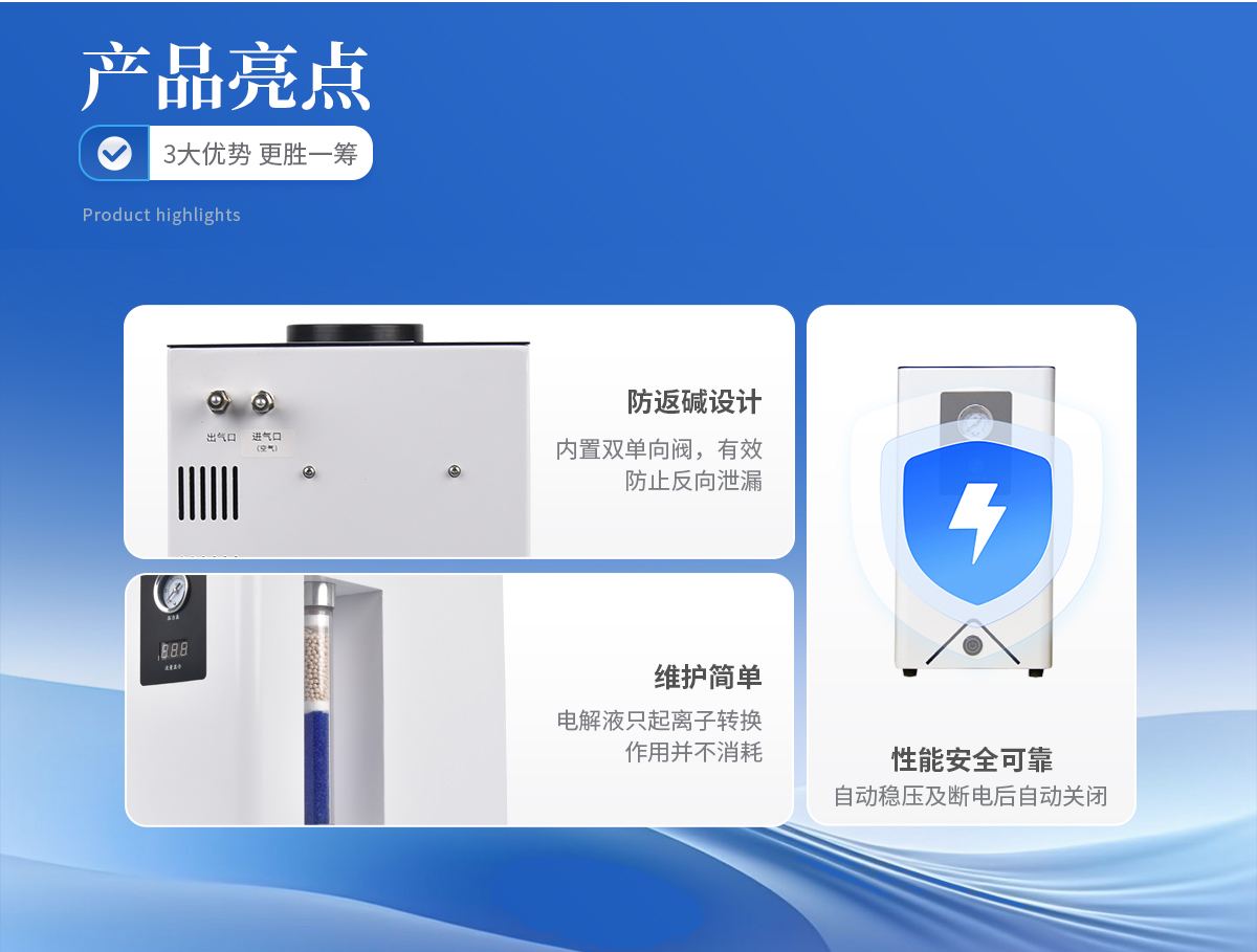 1. 壓力、流量自動顯示,自動恒壓、恒流,氮?dú)饬髁靠筛鶕?jù)用量實(shí)現(xiàn)全自動調(diào)節(jié)。 2. 不銹鋼過濾器,儀器內(nèi)部采用硅橡膠圈(含硫量低),有效提高氣體質(zhì)量,保證色譜基線平穩(wěn)。 3. 配有安全裝置,靈敏可靠,自動防返堿。