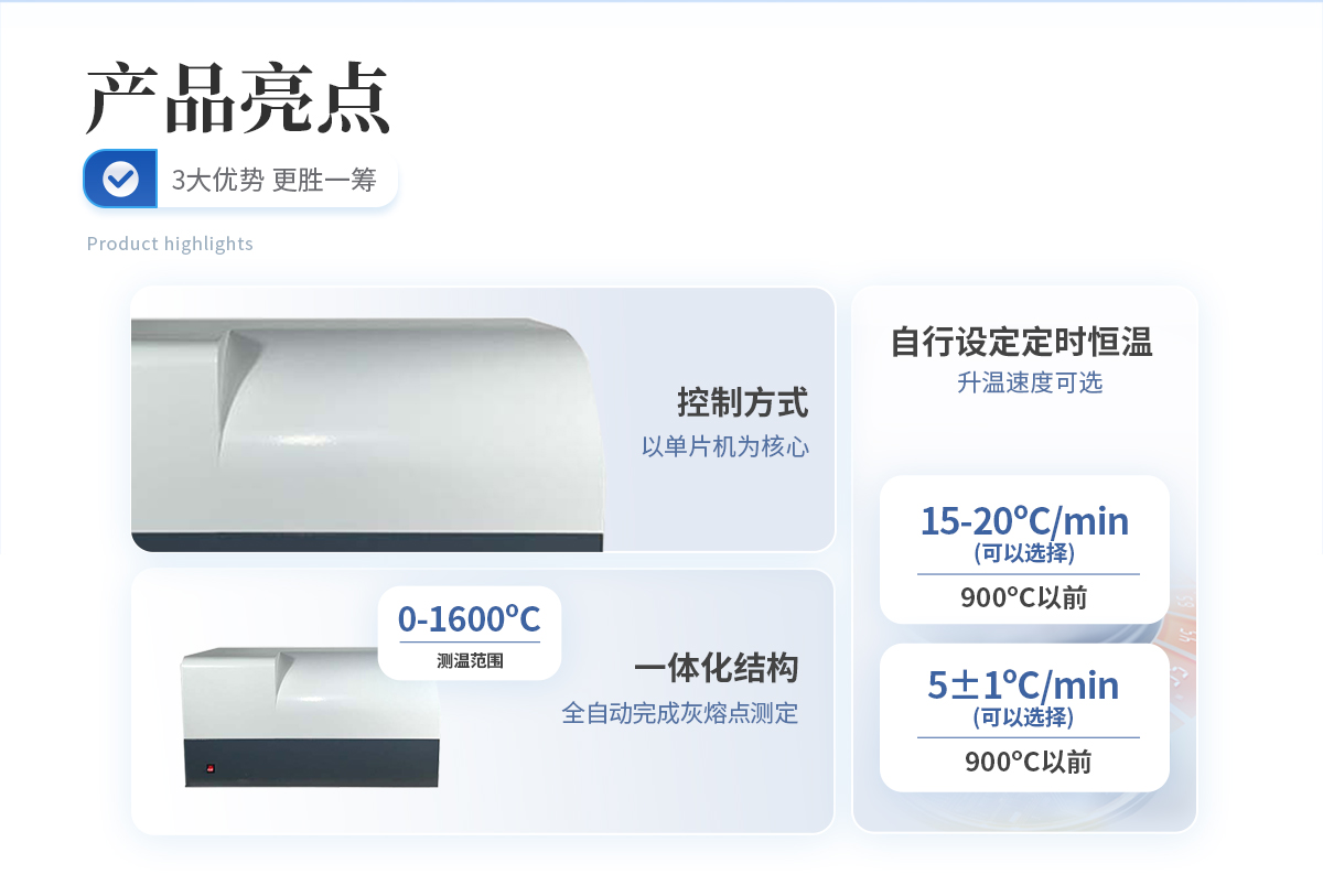 灰熔點測試儀與硅碳管高溫爐配套,是化驗室進行煤灰熔融性測定的智能化儀器.該儀器嚴格按照國標有關(guān)規(guī)定全自動完成灰熔點測定.可以在一定范圍內(nèi)對控制參數(shù)進行選擇和修改,還具備可以自行設(shè)定是定時恒溫程序和標準RS232通訊功能.