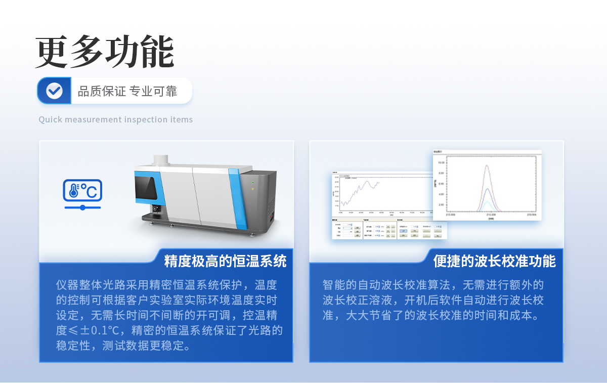 儀器整體光路采用精密恒溫系統(tǒng)保護,溫度的控制可根據(jù)客戶實驗室實際環(huán)境溫度實時設(shè)定,無需長時間不間斷的開可調(diào),控溫精度≤±0.1℃,精密的恒溫系統(tǒng)保證了光路的穩(wěn)定性,測試數(shù)據(jù)更穩(wěn)定。 9、靈敏度**的檢測器:
