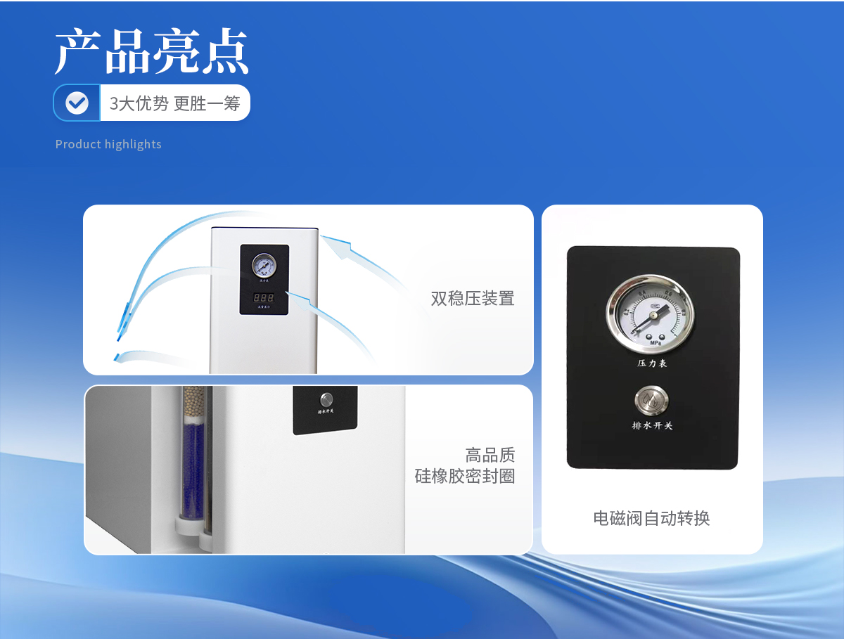 1、雙穩(wěn)壓裝置,確保高精度穩(wěn)壓條件下氣體流量的穩(wěn)定性。 2、電磁閥自動(dòng)轉(zhuǎn)換,徹底杜絕了電磁閥在自動(dòng)放水時(shí)產(chǎn)生的連續(xù)噪音,實(shí)現(xiàn)放水、轉(zhuǎn)換一體化。 3、儀器內(nèi)部采用硅橡膠圈,含硫量低有效提高氣體質(zhì)量,保證色譜基線(xiàn)穩(wěn)定。 4、體積小,雙支FV型亞克力過(guò)濾器,耐壓高,不會(huì)因工作環(huán)境及腐蝕氣體的影響,導(dǎo)致過(guò)濾管變形,開(kāi)裂而產(chǎn)生漏氣現(xiàn)象,可持久使用,一勞永逸。