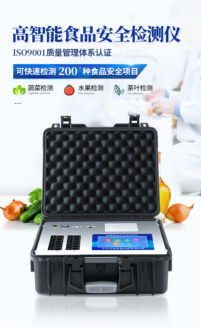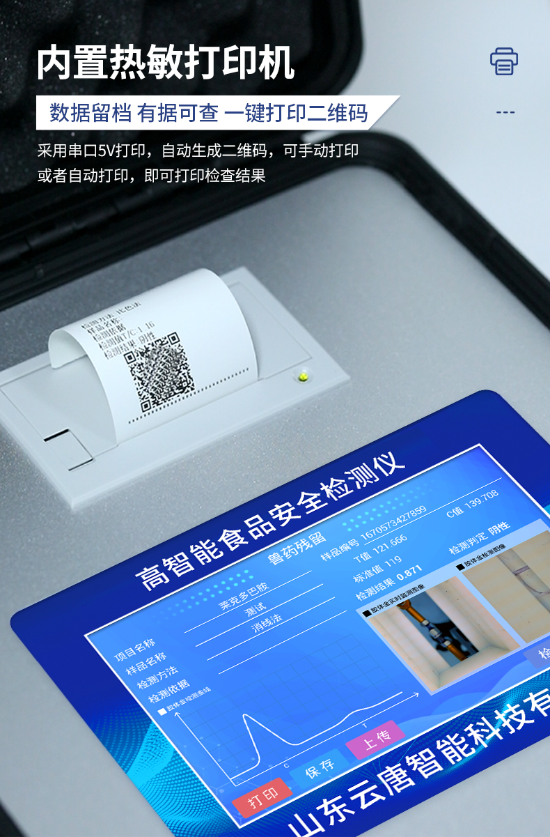 | 該儀器通過光電子技術(shù)對反應(yīng)生成物的反射率進(jìn)行分析測試,定量或定性分析樣品中待測物的含量。 | 安卓智能操作系統(tǒng),7英寸高靈敏真彩觸摸屏,更加**和人性化操作, | 儀器具有4G無線聯(lián)網(wǎng)、wifi聯(lián)網(wǎng)上傳、GPRS無線遠(yuǎn)傳功能,快速上傳數(shù)據(jù)。 | 便攜式儀器,便于現(xiàn)場攜帶操作,主機(jī)重量不大于3kg。 | 具有可見光光源,可檢測可見光信號,檢測值0~30000。 | 具有常用打印機(jī)數(shù)據(jù)線接口,直接打印結(jié)果;配備USB接口,可連接網(wǎng)絡(luò)。 | 具有多個食品安全檢測項目,開放平臺,可以增減檢測項目。 | 檢測通道:12個檢測通道,可以同時測試多個樣品,每個樣品由程序控制分別獨立工作,不會互相干擾。 | 以模擬反射率的標(biāo)準(zhǔn)片為50%附近時為代表,精密度CV值≤0.8%。 | 供電電源:(220±22V)~50Hz±1Hz,供電電源電壓波動不應(yīng)超過220V AC±10%。 | 內(nèi)置打印機(jī),實時打印檢測結(jié)果。內(nèi)置大容量電池,便于現(xiàn)場執(zhí)法檢測。 | 高靈敏度,高檢測精度,高重復(fù)性精度,掃描式高精度光學(xué)傳感器。 | 機(jī)身儲存上萬條檢測結(jié)果,也可以導(dǎo)出儲存。 | 開放端口,可連接監(jiān)管平臺數(shù)據(jù)庫,界面有上傳操作。 |
