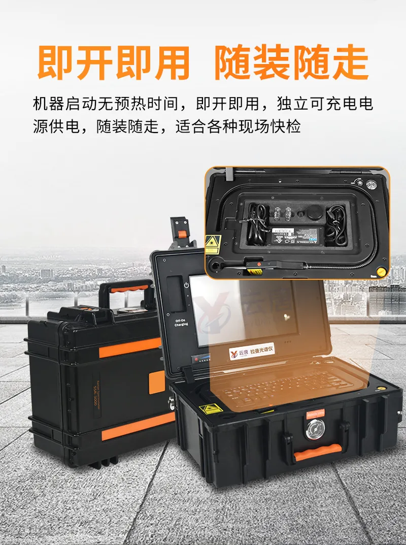 便攜式設計:獨立可充電電源供電,隨裝隨走,適合各種現(xiàn)場快檢