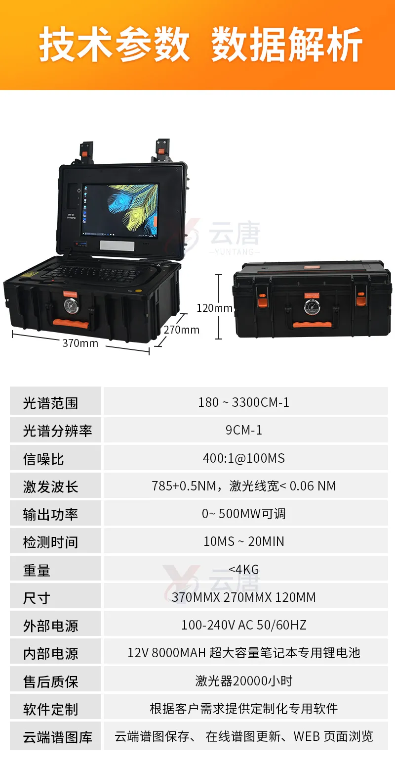 云唐便攜式拉曼光譜分析儀技術參數: