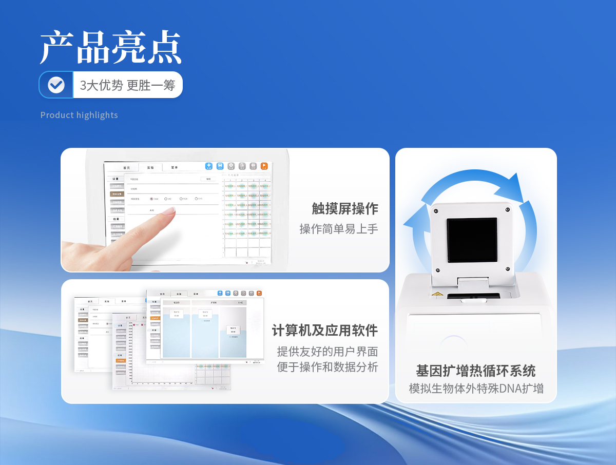 對(duì)取于其他動(dòng)物體內(nèi)的生物樣本(如血液,體液等)中包含的目標(biāo)核酸,進(jìn)行快速精準(zhǔn)的定性和定量分析,同時(shí)也能夠?qū)μ厥鈽颖具M(jìn)行標(biāo)準(zhǔn)曲線,熔解曲線,基因分型等分析。