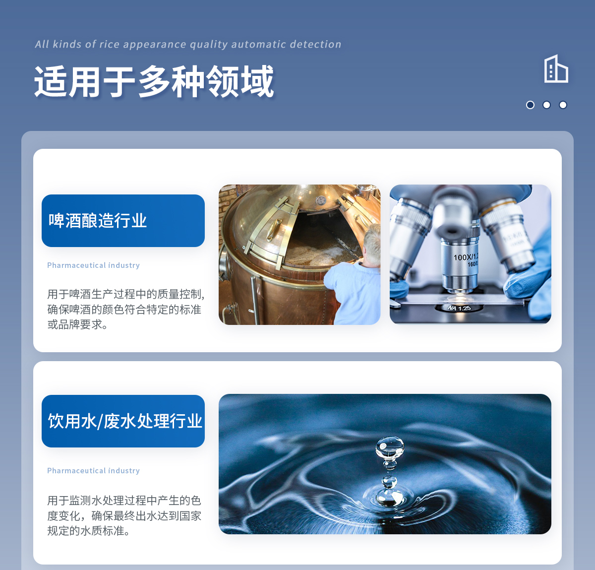 啤酒色度測定儀采用鉑-鈷標準色度法,用于測定溶解狀態(tài)的物質(zhì)所產(chǎn)生的顏色,儀器采用國家標準GB5750中所規(guī)定的鉑-鈷色度標準溶液進行標定,采用鉑-鈷色度作為計量單位。