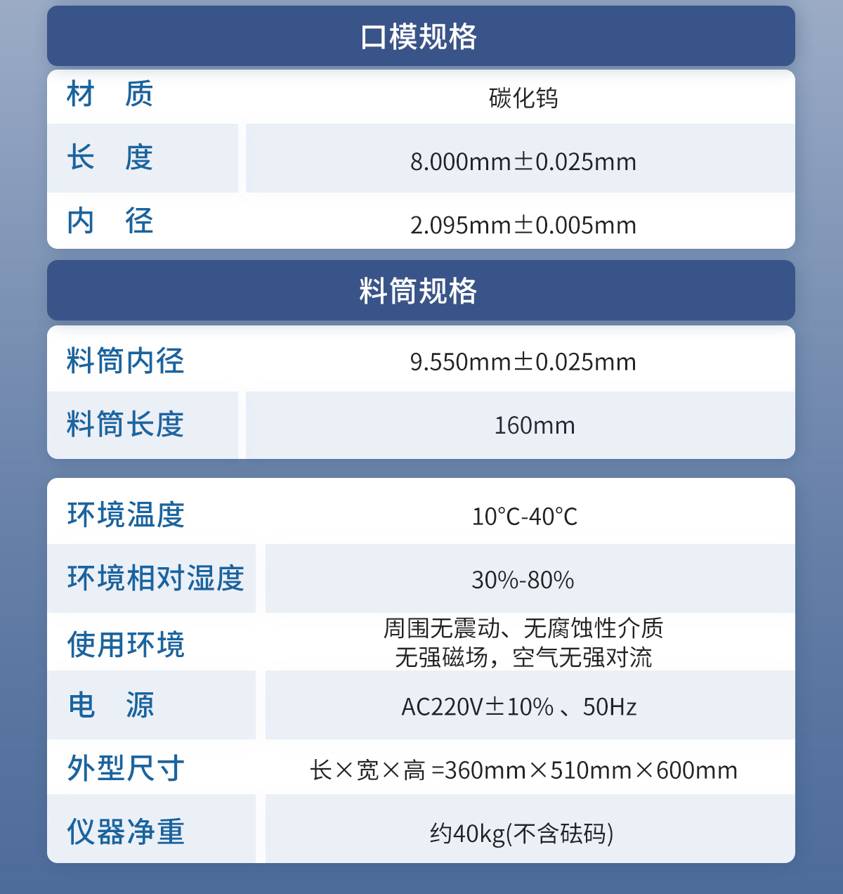 機(jī)臺設(shè)計標(biāo)準(zhǔn):符合ASTM-D1238、D3364、ISO-1133、JIS-K7210標(biāo)準(zhǔn)要求。