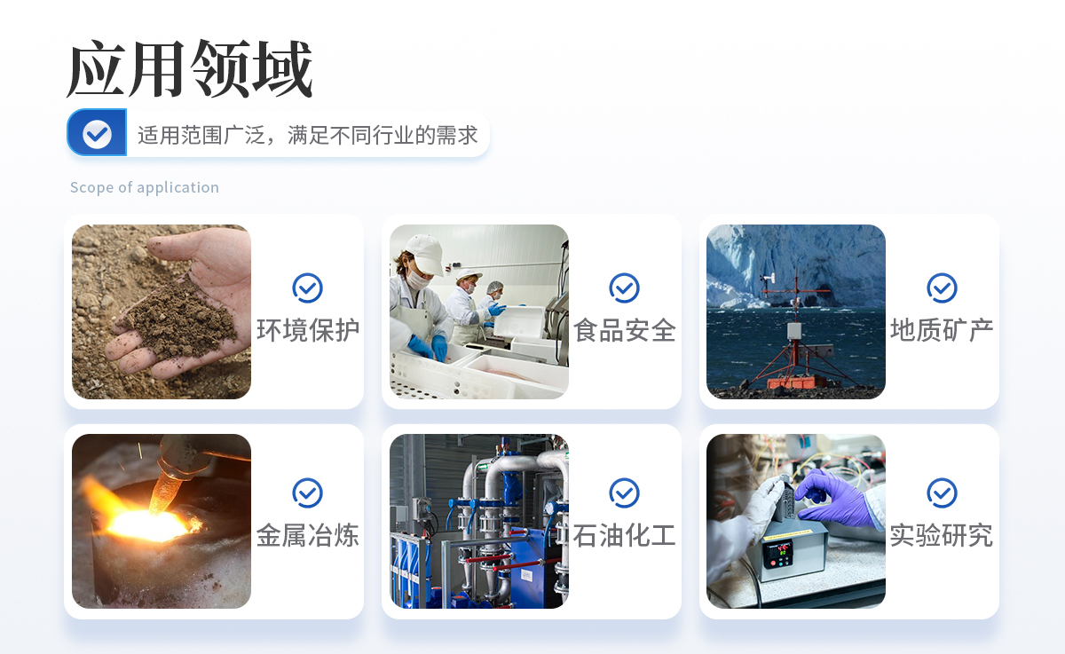 原子熒光光譜儀的應(yīng)用領(lǐng)域較為廣泛,主要測試樣品中 11 種超痕量元素的含量,**檢測下限可達(dá)千億分之一級。應(yīng)用領(lǐng)域包括水質(zhì)、土壤、大氣等樣環(huán)境檢測項(xiàng)目、食品檢驗(yàn)、檢驗(yàn)檢疫、藥品檢驗(yàn)、化妝品檢驗(yàn)、土壤飼料肥料檢驗(yàn)、地質(zhì)礦產(chǎn)測試、冶金樣品檢驗(yàn)、教學(xué)研究等。