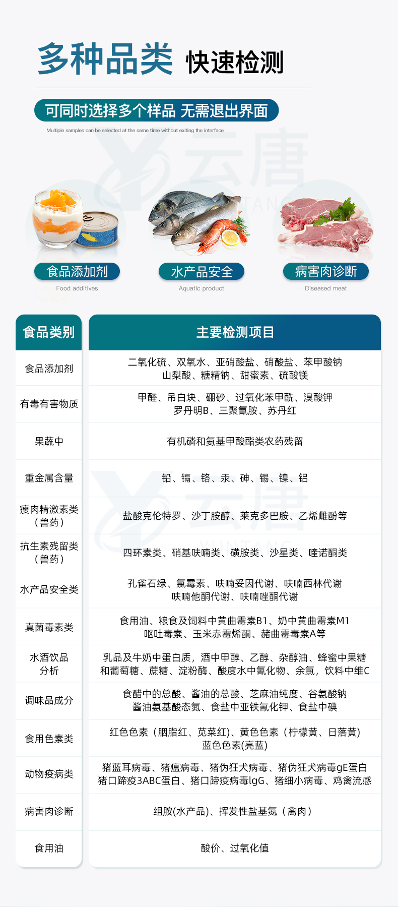 水產(chǎn)品安全類 | 孔雀石綠、氯霉素、呋喃妥因、呋喃西林、呋喃它酮、呋喃唑酮等 |