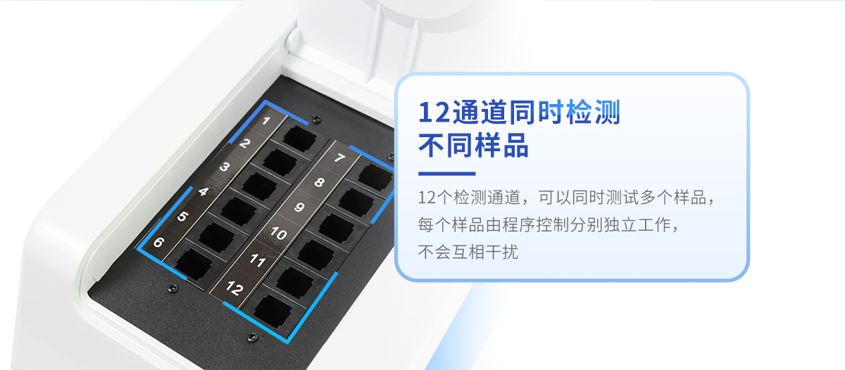 3、檢測(cè)通道:≥12個(gè)檢測(cè)通道,可以同時(shí)測(cè)試多個(gè)樣品,每個(gè)樣品由程序控制分別獨(dú)立工作,不會(huì)互相干擾。