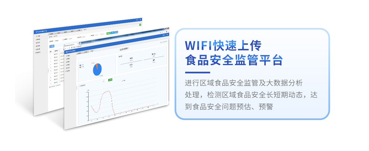8、儀器帶有監(jiān)管平臺(tái)。數(shù)據(jù)可局域網(wǎng)和互聯(lián)網(wǎng)數(shù)據(jù)上傳,檢測(cè)結(jié)果直接傳至食品安全監(jiān)管平臺(tái)。進(jìn)行區(qū)域食品安全監(jiān)管及大數(shù)據(jù)分析處理,檢測(cè)區(qū)域食品安全長(zhǎng)短期動(dòng)態(tài),達(dá)到食品安全問題預(yù)估、預(yù)警