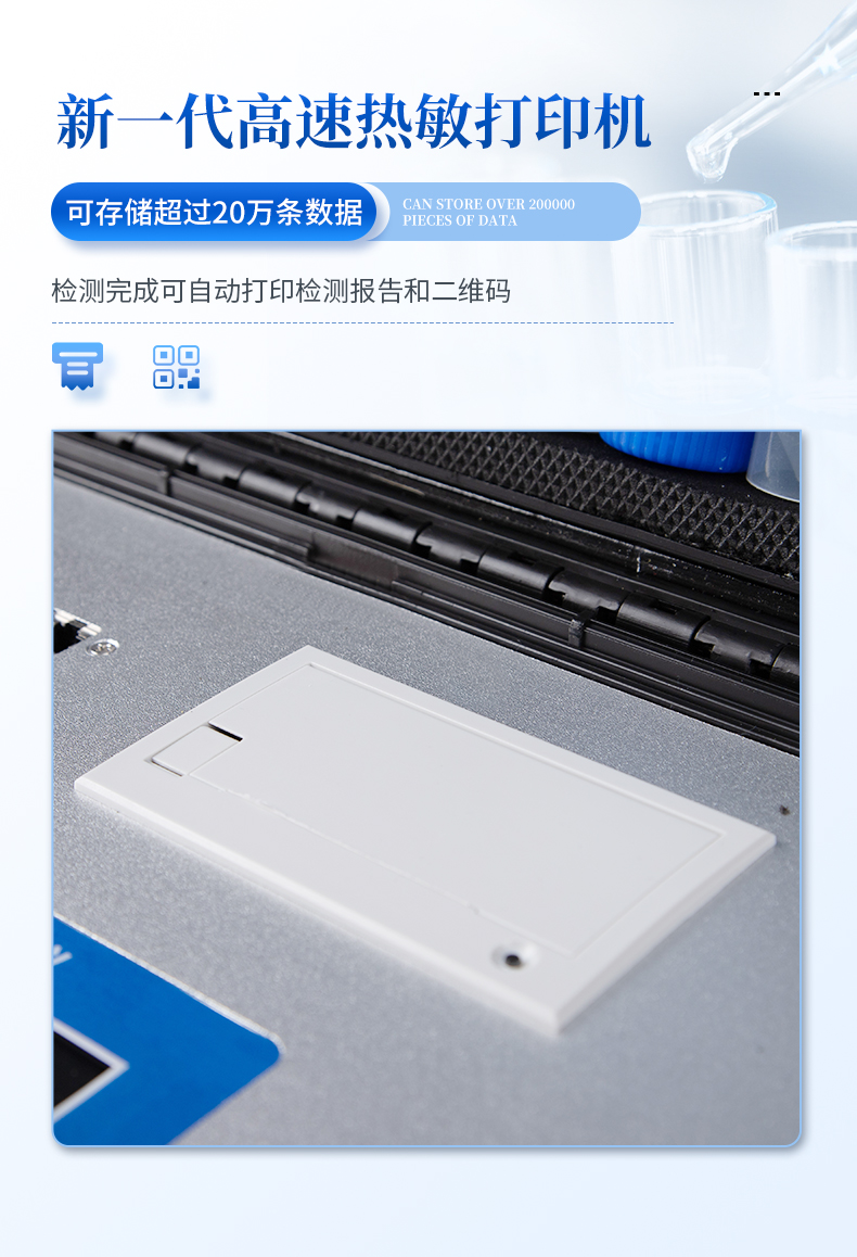 4、新一代高速熱敏打印機(jī),檢測(cè)完成可自動(dòng)打印檢測(cè)報(bào)告和二維碼。