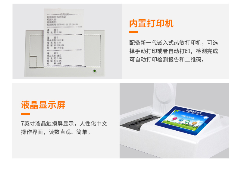 5、配備新一代嵌入式熱敏打印機,可選擇手動打印或者自動打印,檢測完成可自動打印檢測報告和二維碼。