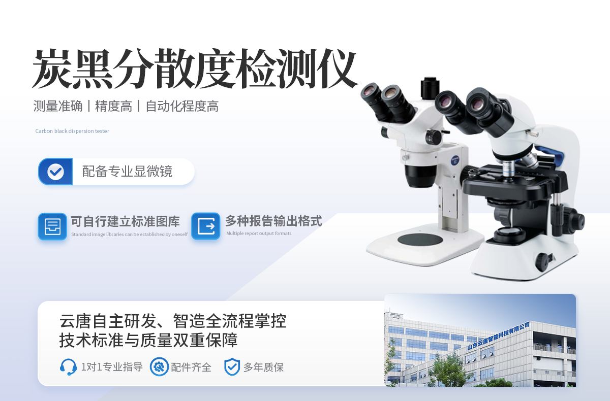 炭黑分散度檢測儀是根據(jù)國際標(biāo)準(zhǔn)GB/T 6030-2006 橡膠中炭黑和炭黑二氧化硅分散的評估 快速比較法的檢測儀器。該儀器適配軟件及相應(yīng)的顯微鏡,通過對炭黑粒團(tuán)的尺度、形態(tài)、及散布情況的測量,可以建立起這些參數(shù)與力學(xué)性能、抗靜電性能、吸濕性能等宏觀性能指標(biāo)的內(nèi)在聯(lián)系。對橡膠材料的品質(zhì)保障、生產(chǎn)工藝、新品研發(fā)產(chǎn)生積極影響,同時(shí)推進(jìn)企業(yè)和行業(yè)技術(shù)水平的快速提升。