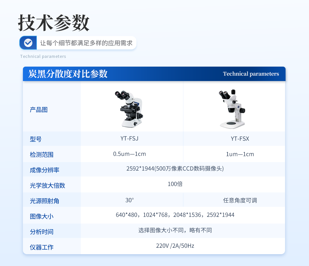 | 1. 檢測范圍:1um—1cm | 2. 成像分辨率:2592*1944(500萬像素CCD數(shù)碼攝像頭) | 3. 光學(xué)放大倍數(shù):100倍 | 4. 光源照射角:任意角度可調(diào) | 5. 圖像大?。?40*480,1024*768,2048*1536,2592*1944 | 6. 分析時(shí)間:選擇圖像大小不同,略有不同 | 7. 儀器工作電源:220V /2A/50Hz |