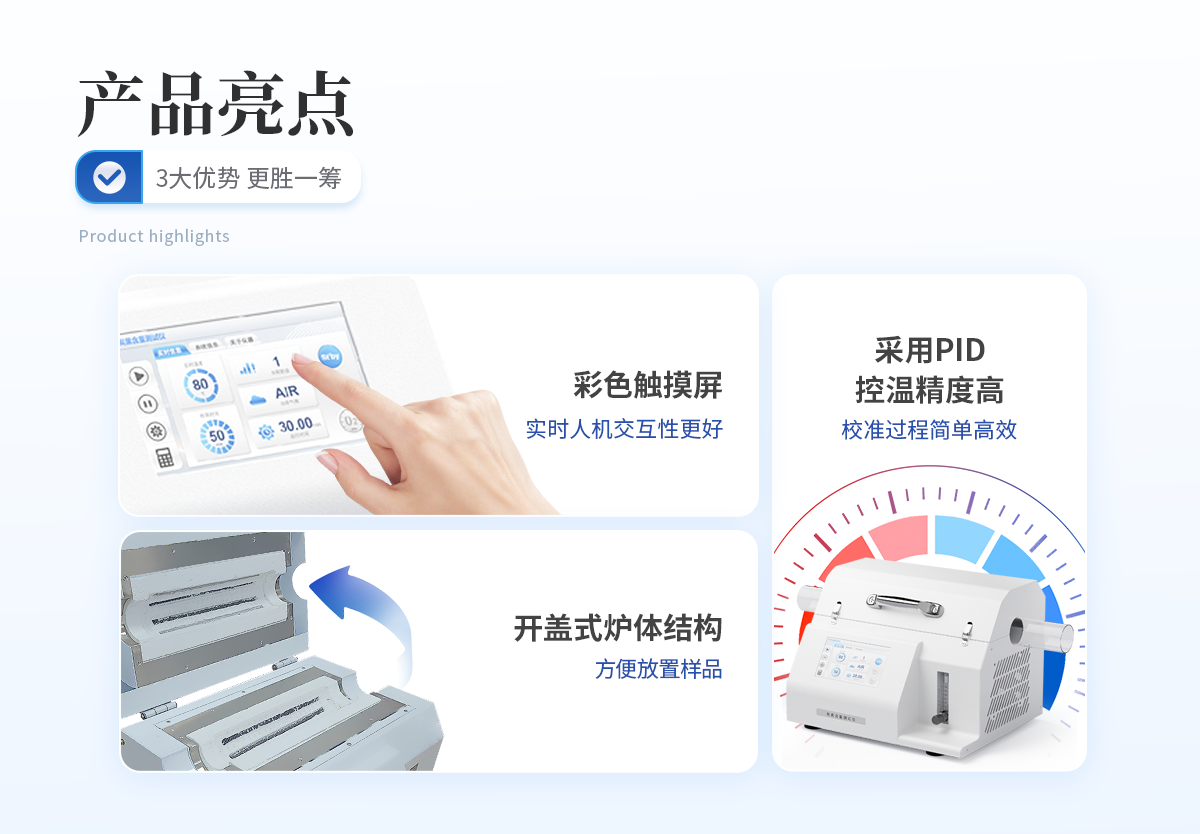| 1. 采用開(kāi)蓋式爐體結(jié)構(gòu),方便放置樣品且散熱效果更佳。 | 2. 爐膛采用超長(zhǎng)加熱單元,可同時(shí)測(cè)試4組樣品,大大提高測(cè)試效率。 | 3. 軟件自帶計(jì)算功能,可以一鍵自動(dòng)計(jì)算出炭黑含量、灰分含量,非常得方便快捷。 | 4. 采用PID精準(zhǔn)控溫,控溫精度高,溫度范圍大,爐膛溫度均勻性高。 | 5. 7寸液晶觸摸屏顯示,可一鍵操作啟動(dòng),設(shè)定恒溫時(shí)間,恒溫精度高; | 6. 智能化可編程控制,可設(shè)置多組分段升溫程序。 |
