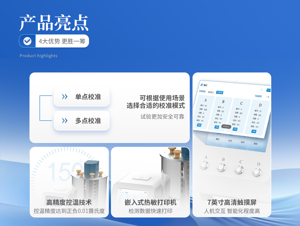 測(cè)試方法:品氏、烏氏兩種。 溫度范圍:室溫~+150°C精度±0.01°C。 溫度傳感器:德國(guó)A級(jí)Pt100不銹鋼探頭,內(nèi)置溫度校正,檢測(cè)結(jié)果可靠。 加熱方式:電加熱單元,**加熱功率1600W。 顯示:7寸工業(yè)彩色觸摸屏。 溫度校正:?jiǎn)吸c(diǎn)校準(zhǔn)、多點(diǎn)校準(zhǔn)可選。 數(shù)據(jù)存儲(chǔ):10000組測(cè)試結(jié)果。 尺寸:530*310*232.5(mm) 工作環(huán)境: 溫 度:10-35℃ 濕 度:相對(duì)濕度不大于50% 工作電壓:220V 50HZ
