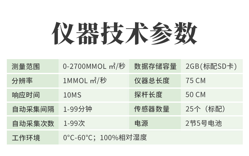 植物冠層分析儀儀器主要技術(shù)參數(shù)