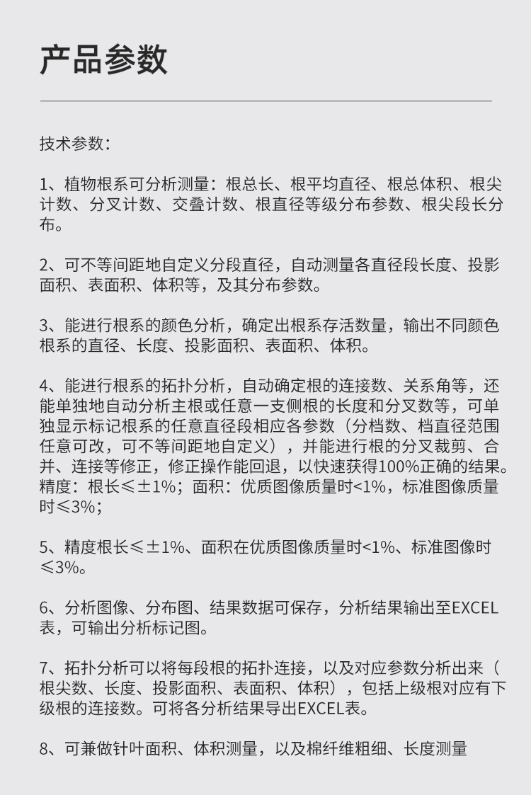 物根系分析儀器系統(tǒng)可分析測(cè)量根總長;