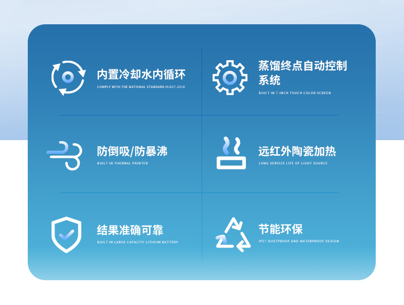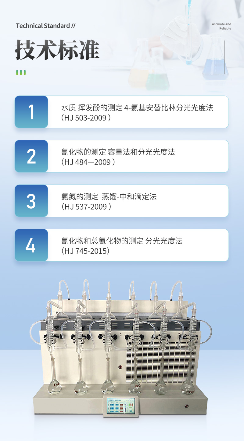 該儀器實(shí)驗(yàn)了控溫、自動防倒吸、加熱均勻、防止暴沸、智能終點(diǎn)控制等功能。使用方便,節(jié)能環(huán)保。經(jīng)過實(shí)驗(yàn)室蒸餾回收率比對驗(yàn)證,結(jié)果準(zhǔn)確,回收率達(dá)95%以上。該儀器可廣泛適用于環(huán)保、疾控、水產(chǎn)、供排水、高校、科研院所、廠礦企業(yè)等各類化學(xué)實(shí)驗(yàn)室需要蒸餾處理的場所,如揮發(fā)酚、氨氮、凱氏氮油中水分等項(xiàng)目的蒸餾處理。